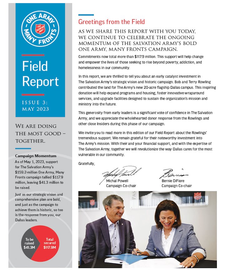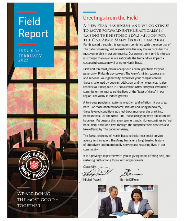 Greetings from the Field. Keep up with news, progress, and the bold vision for the One Army, Many Fronts campaign.
